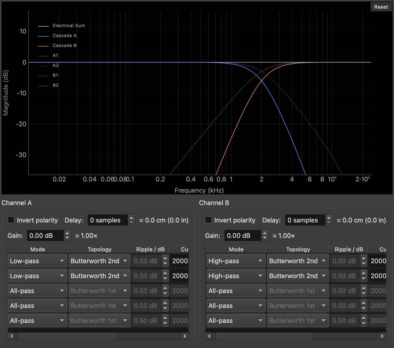 Design flexible active crossovers in the desktop app—no passive network between amp and driver. Save and recall presets for different builds.